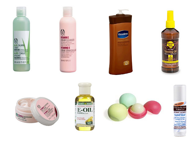 If da lips aint good, they aint poppi’n. But most importantly, to protect them from the sun. In that case… that's why they invented sun tan oil right, to ruin your body and keep the lips in tack? Kidding, for those who are pale use sunscreen. But anyway, I like to get some color but also not get skin cancer so my oil most definitely has at least some SPF in it. (4spf) Then of course I have my daily face/ body lotion/ wash, vitamin E, and all those other fancy shmancy things I need but don't remember I use everyday which became a daily ritual. From top Left: